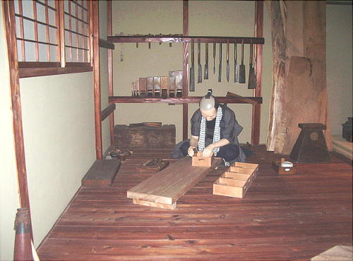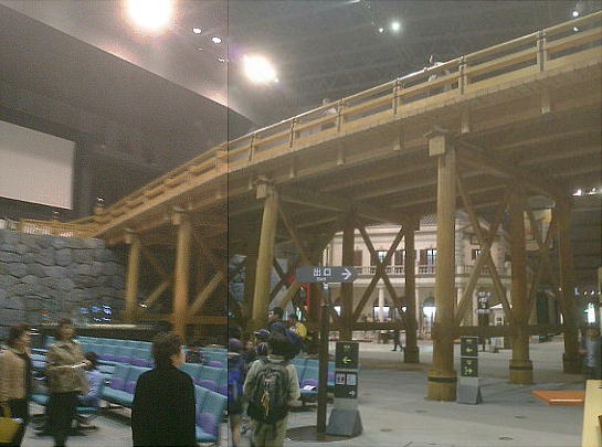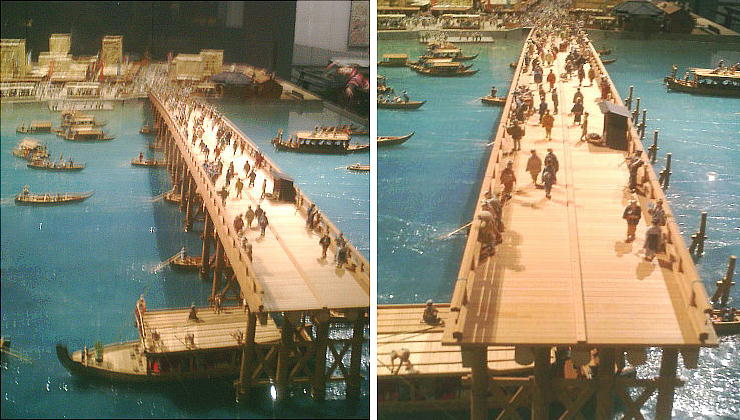やき)、床板は檜(ひのき)を使い、原寸大(長さは半分)に再現した橋を渡ると「あちら側」=「江戸の世界」という仕