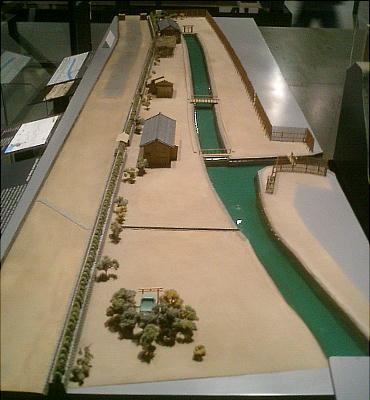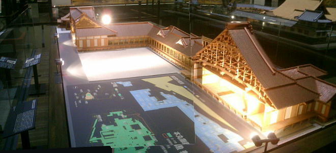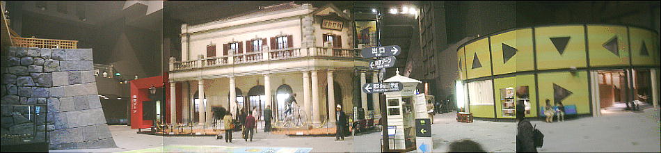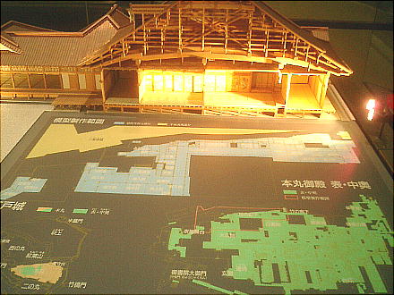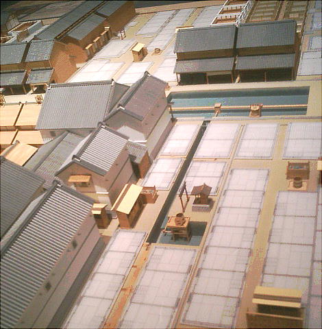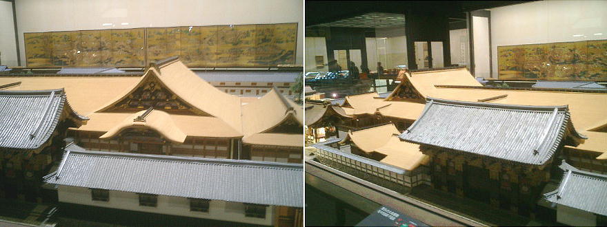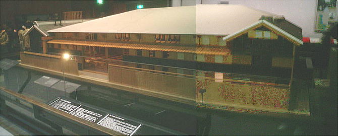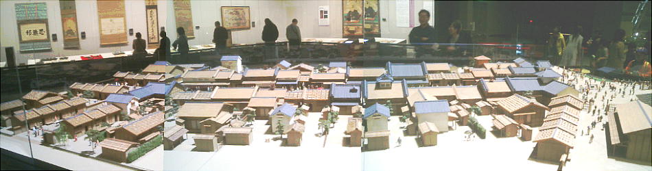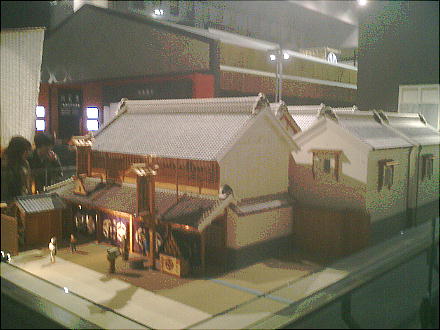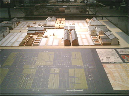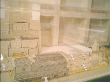 降りて展示室へ入ってくると、眼下に原寸大建物のジオラマ群を見る。ここから階下へ降りていくような順路になっている