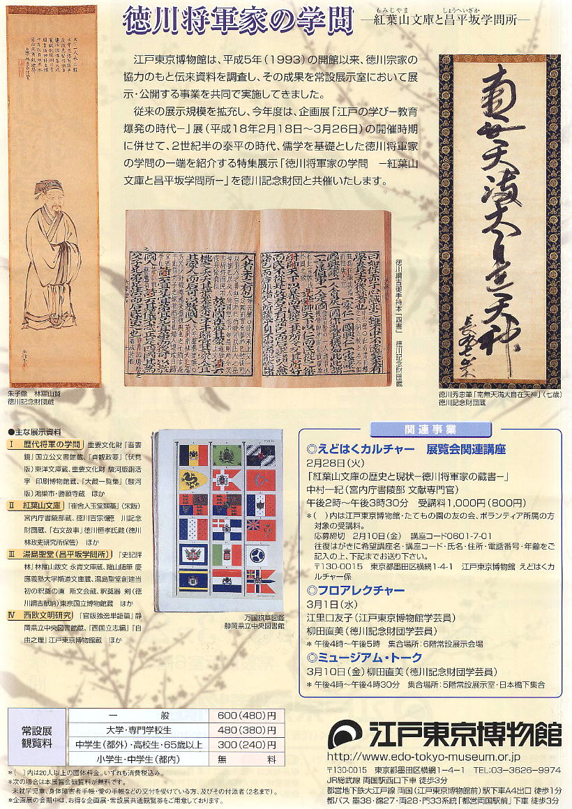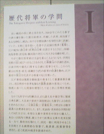 この博物館では将軍家に伝来した貴重な資料を中心とした展覧会や催しを開催している。現在の特集展示は、「徳川将軍家