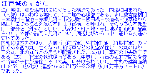 の2倍以上あり、博物館としてはいかにも巨大な規模である。江戸幕府最盛期の巨大な権力構造を今に示すかのように、