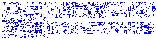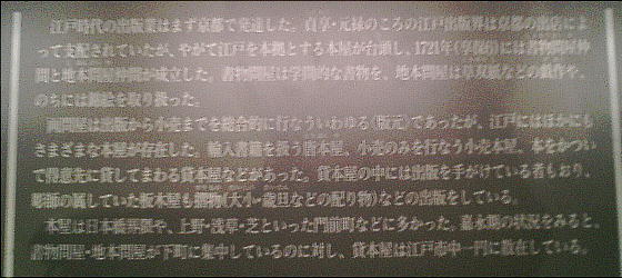 った。魚河岸あり問屋があり、大店が軒をつらねるという活気に満ちた雰囲気は、やがて出版、美術などをも生み出してい