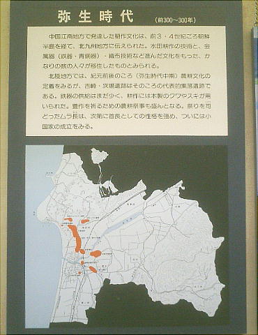 邑知潟の環境もあって、大規模な集落が営まれるようになる。中でも「吉崎・次場(よしざき・すば)遺跡」は弥生時代