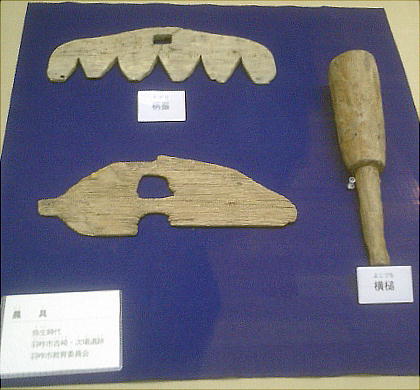 遺物などさまざまな種類にわたっている。木器には鉄斧着装用の柄や鍬・エブリ・庖丁形木製品などの農具があり、石器に