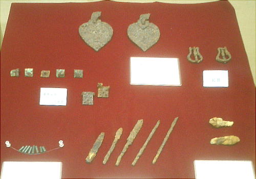ようである。多くの土器と共に、小型の銅鏡や鉄刀が出土している。また火を使った儀式の跡もあり、神への祈りには、