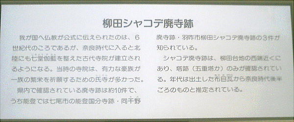 ここは1978年3月、能登海浜道路建設工事に伴って発見された。まず大量の土器が発見され、その後3年にわたる調