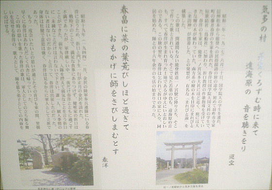 登を巡行したとき、気多本社に参詣して、「之乎路から 直超え来れば羽咋の海 朝凪ぎしたり 船楫もがも」と詠んだ。