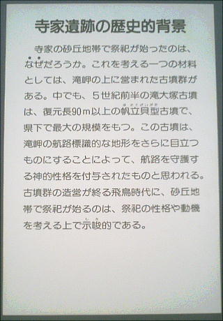 査で、内列砂丘上に営まれた縄文前期から室町時代にかけての大規模な複合遺跡であることが判明した。特に飛鳥時代か