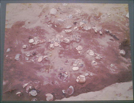 火が使われたようである。たき火の跡が、多く見つかっている。火で焼けた上を、粘土で覆っている所もあった。これら
