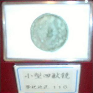 ほう製小型内行花文鏡1面と懸垂用とみられる四鏡片の出土である。