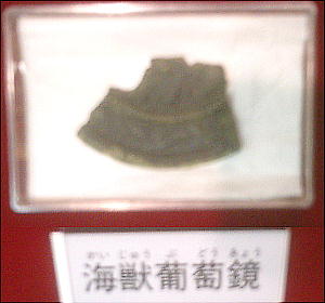 寺家遺跡から出土した海獣葡萄鏡は、能登半島先端輪島市にある重蔵神社に所蔵されている、舳倉島出土の海獣葡萄鏡と