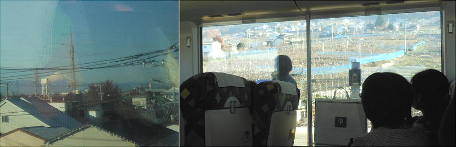 為中央線に乗った。甲府に近い「勝沼ぶどう園駅」(だったかな?)付近に来ると、車窓の左右いっぱいに葡萄畑が拡がっている。