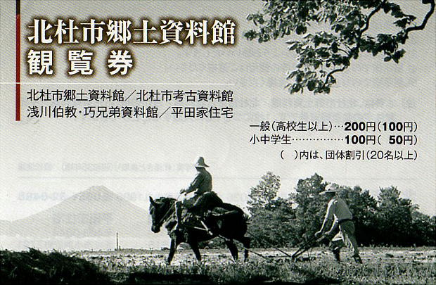 入館料 :一般【高校生以上】200円(100円)、小中学生100円(50円)( )内は20名以上の団体料金 北杜市内小中学生無料