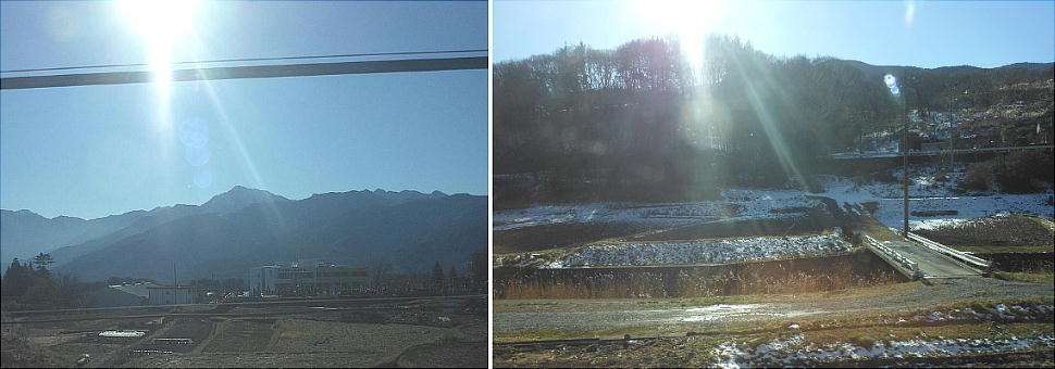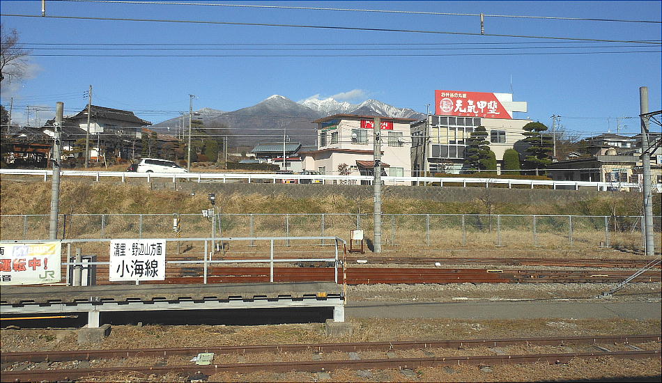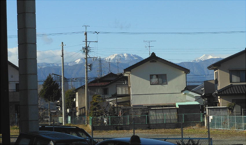 車窓から、南に南アルプスの山並みが綺麗に見え、北には八ケ岳が見えて、付近にもう一泊して八ケ岳に登りたくなった。子供達が