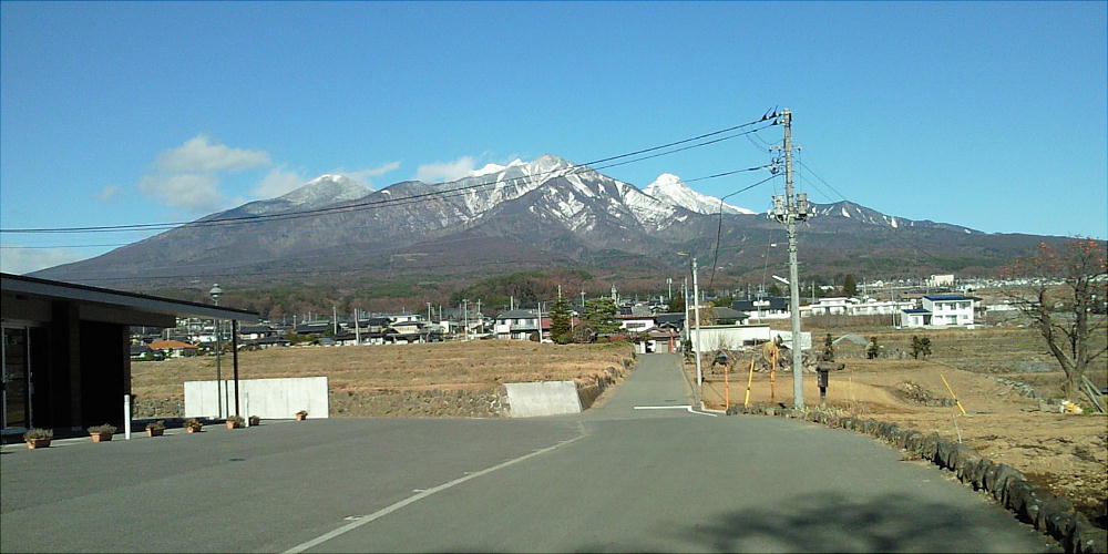 資料館の北に、八ヶ岳の権現岳・北岳が実に綺麗だ。上の写真の左側に下の写真が続く。
