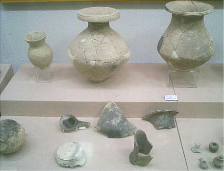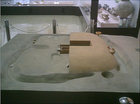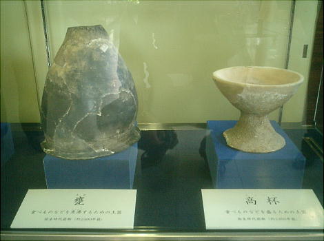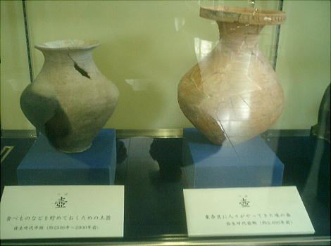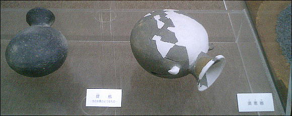 現在資料館が建っている場所である弥生集落の外側には、貯蔵穴が群れを成して発見され、中には壷・甕が入