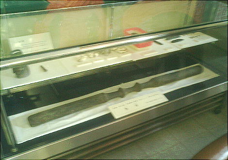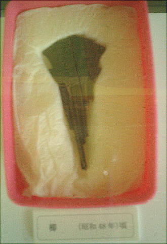 センチ、厚さ14.5センチ、重さ28キログラムの大きさ。上右がそのレプリカで、展示室前の玄関口に飾ってある。玄