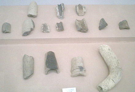 百数十点が発見され、熱に強い粘土製であり、基部には風を送る革袋を締め付ける溝が付いていた。上右はフ