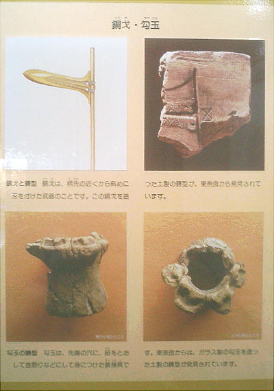 などを造って生活し、外側には墓や田んぼを作っていた。又環濠の外側には銅鐸・銅戈・勾玉を鋳造する工人