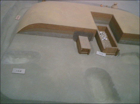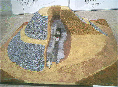 4.さらに四壁の上に大きな天井石数個を並べて封鎖し、その上に粘土を厚く被覆して土で埋める。