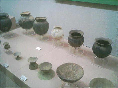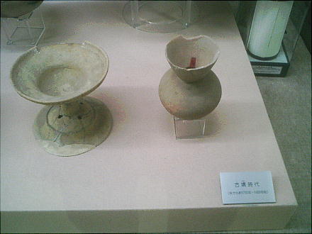 1階の展示室では、時代順に茨木市の出土物が並び、茨木の歴史をつぶさに観察できるようになっている。