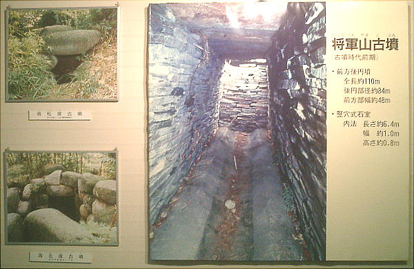上記の将軍山古墳の石室は、韓国で見た武寧王陵古墳の形状と全く同じである。前期には大陸・半島様式の古墳が多い。