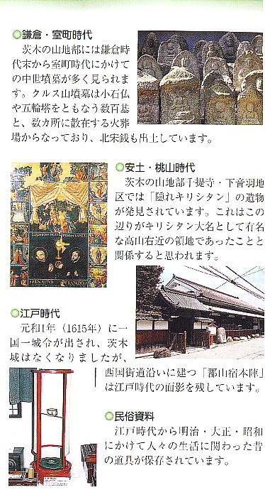 ここでの資料写真・解説は、茨木市教育委員会発行の「茨木の歴史」、および館内にあった他パンフレット類か