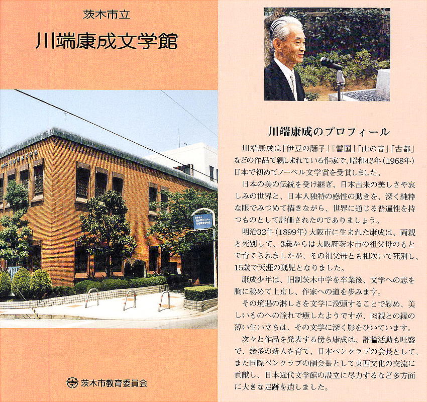 茨木市立川端康成文学館茨木市立川端康成文学館は、日本人初のノーベル文学賞受賞者である作家・川端康成の