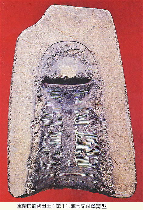 舌を下げて鳴らしたが、大型化するにつれ農業祭祀器として集団の所有物となっていった。銅鐸の鋳型は流水