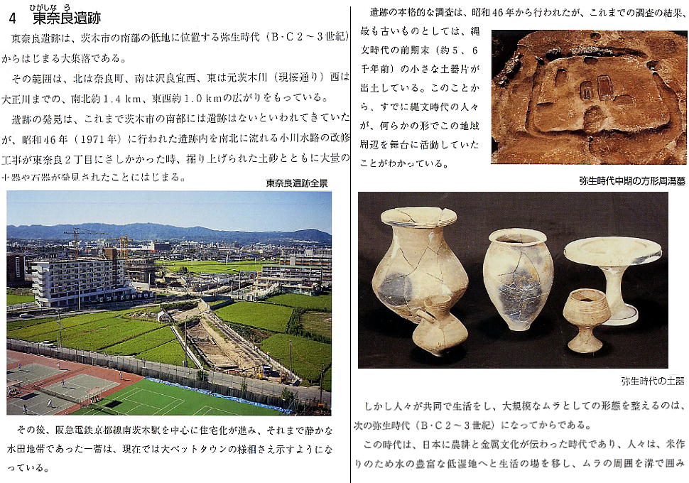 南茨木駅は万博の年にできた比較的新しい駅で、駅一帯が、弥生時代から古墳時代にかけての「東奈良遺跡」にあ
