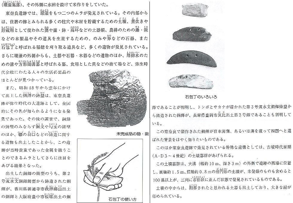 にこの東奈良の地に、文化性・社会性の高い東奈良弥生人が大集落を形成し、彼らは銅鐸を祭器として、銅剣