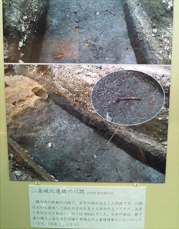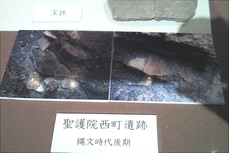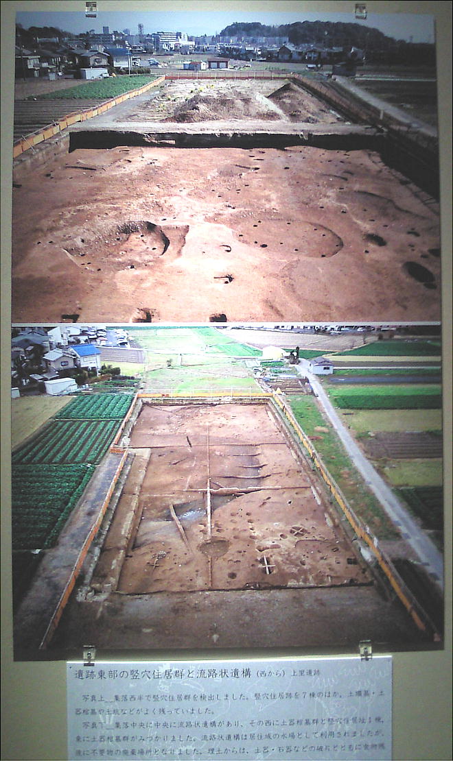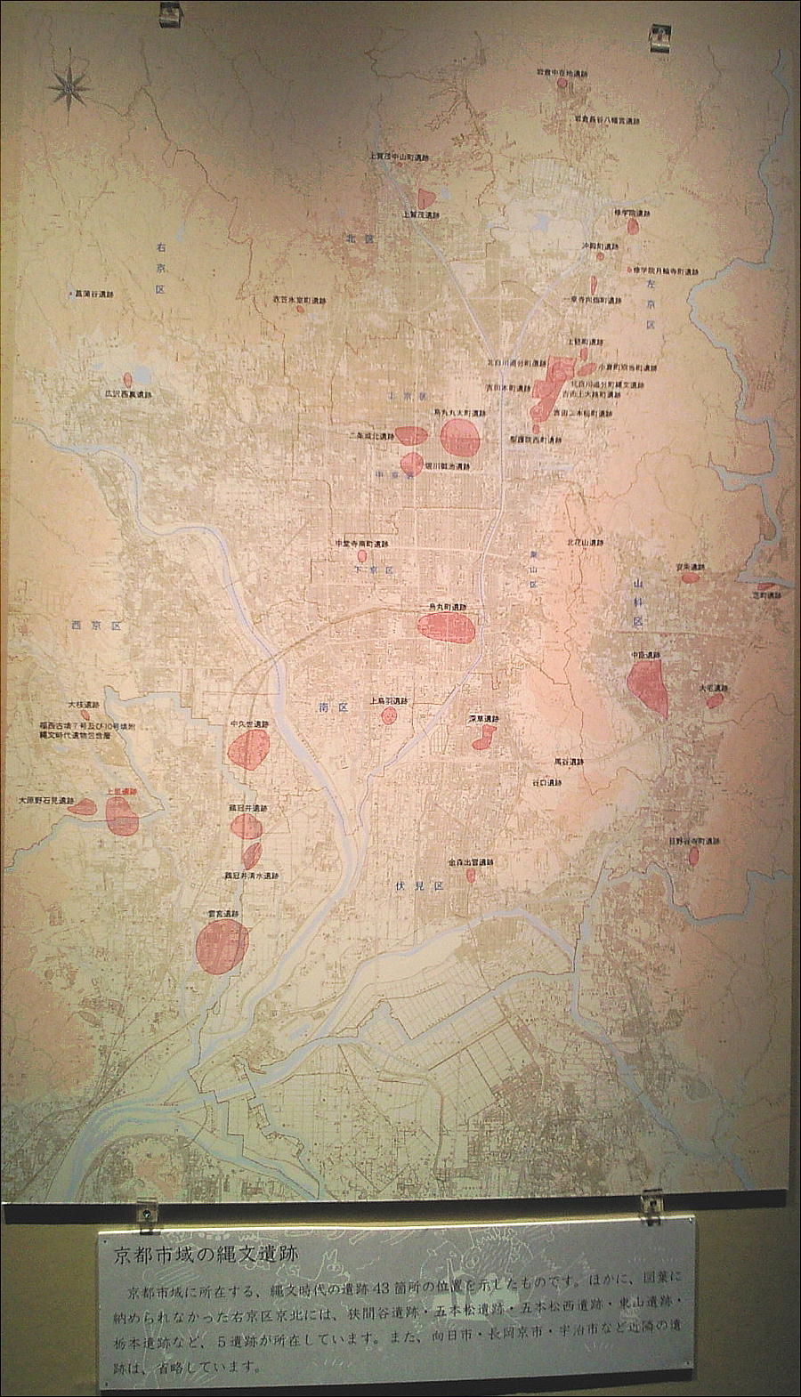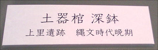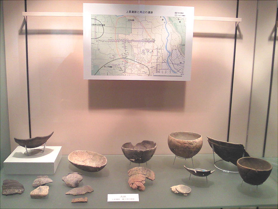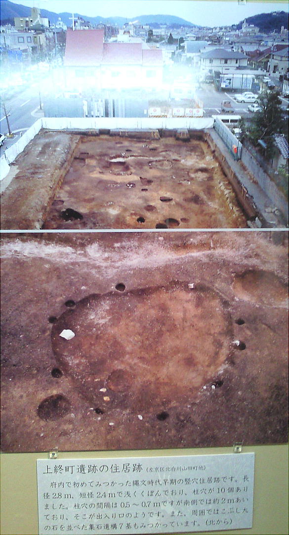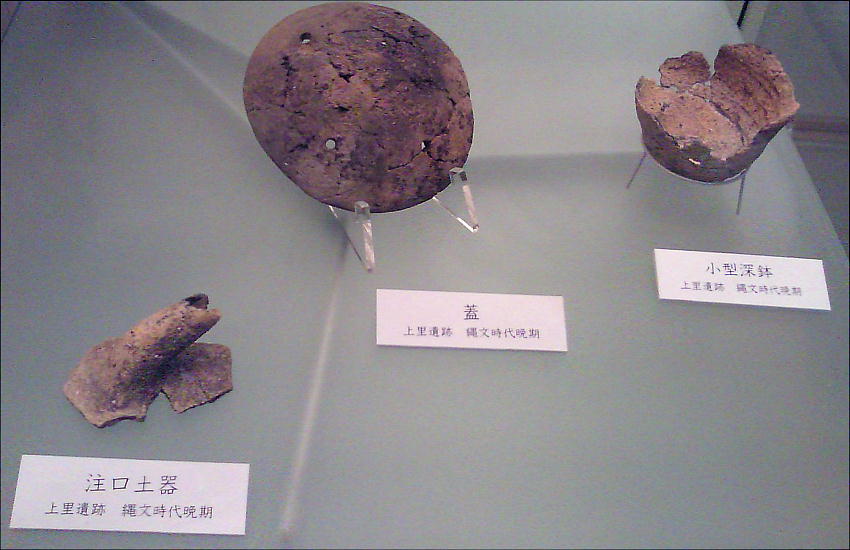 京都市立考古資料館で、以前発掘調査の現場を見に行った京都市西京区の「上里遺跡」の発掘出土品を展示していた。この遺跡は、 奈良とどっちの説明会に行こうか迷って結局ここにし、また風邪気味で躰もしんどく、しかも遺跡を探して相当歩き倒したので、 私にとっては特に思い入れが強い遺跡である。その時の模様は以下にあるが、今回その成果を展示している。 思えば、京都にも縄文人たちが住んでいた証拠だし、無くなってしまった北白川の縄文遺跡などと違ってここは「いま」見れる遺 跡であり、発掘品なのだ。言わば「ホットな」遺跡である。