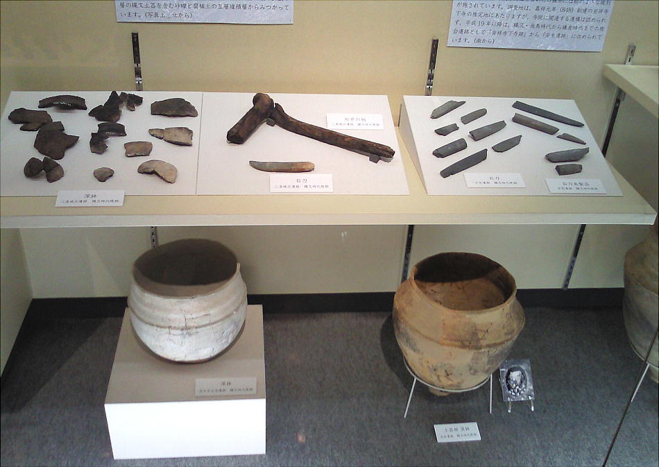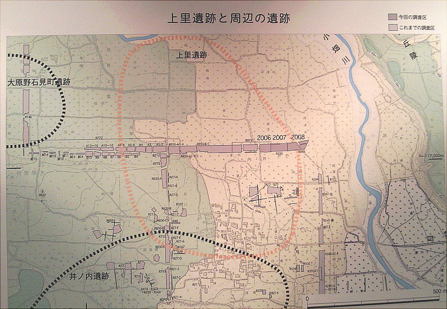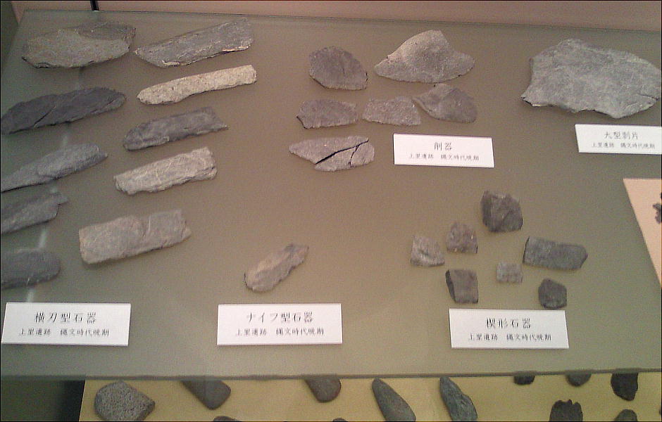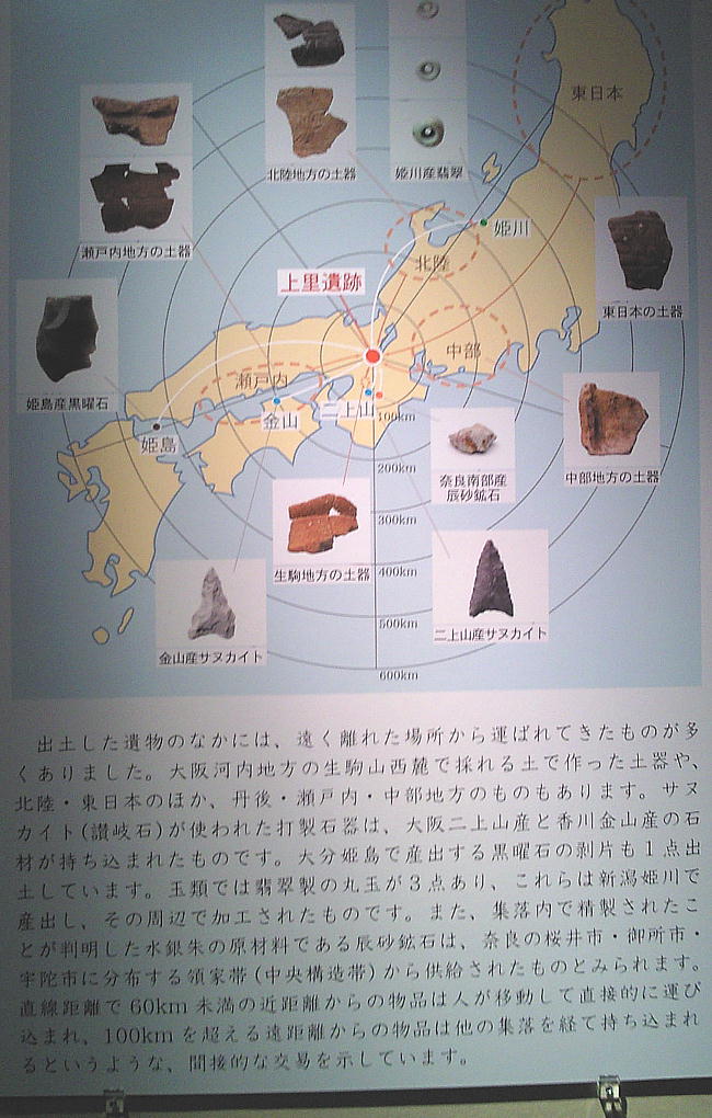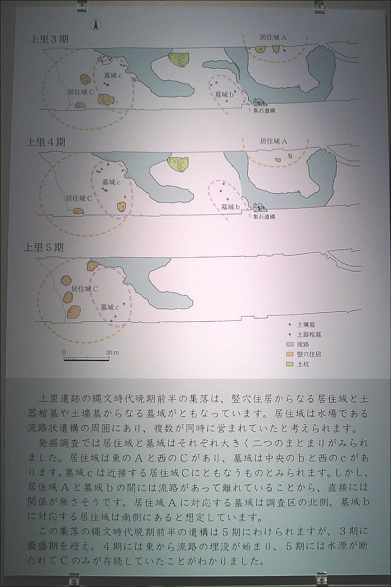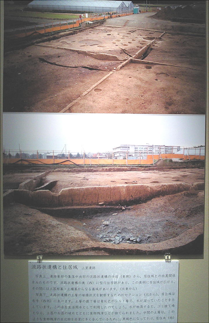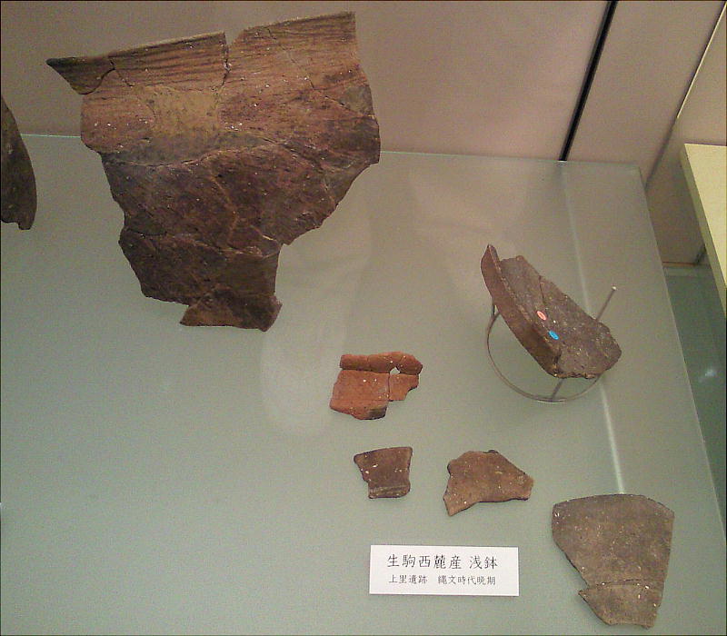 京都市立考古資料館で、以前発掘調査の現場を見に行った京都市西京区の「上里遺跡」の発掘出土品を展示していた。この遺跡は、 奈良とどっちの説明会に行こうか迷って結局ここにし、また風邪気味で躰もしんどく、しかも遺跡を探して相当歩き倒したので、 私にとっては特に思い入れが強い遺跡である。その時の模様は以下にあるが、今回その成果を展示している。 思えば、京都にも縄文人たちが住んでいた証拠だし、無くなってしまった北白川の縄文遺跡などと違ってここは「いま」見れる遺 跡であり、発掘品なのだ。言わば「ホットな」遺跡である。