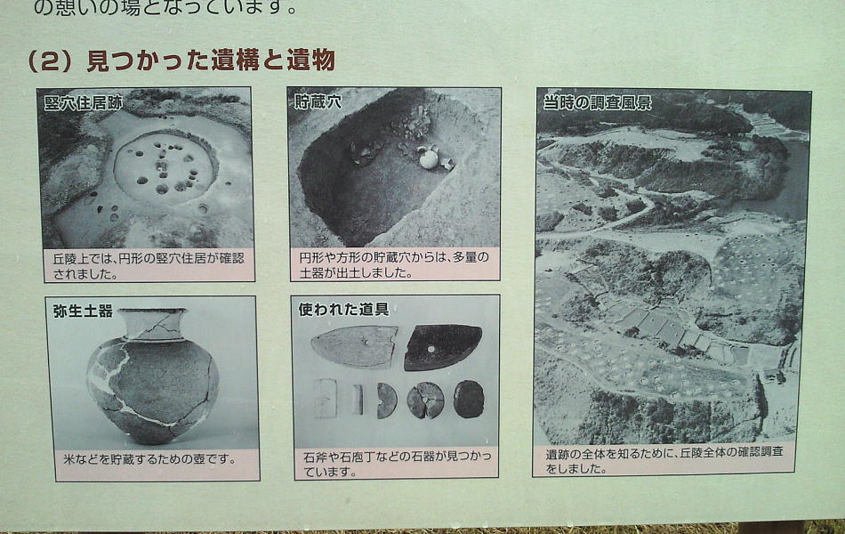 地。遺跡は4つの丘陵に分かれ、それぞれ竪穴住居や食物の貯蔵穴が十数基ほど集まっていたことが分かっている。周辺からは多数