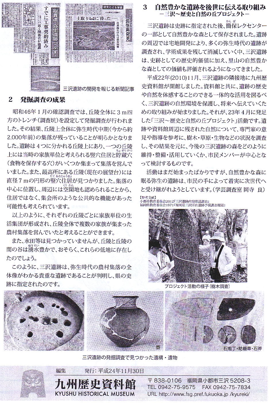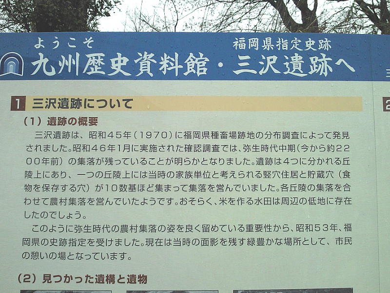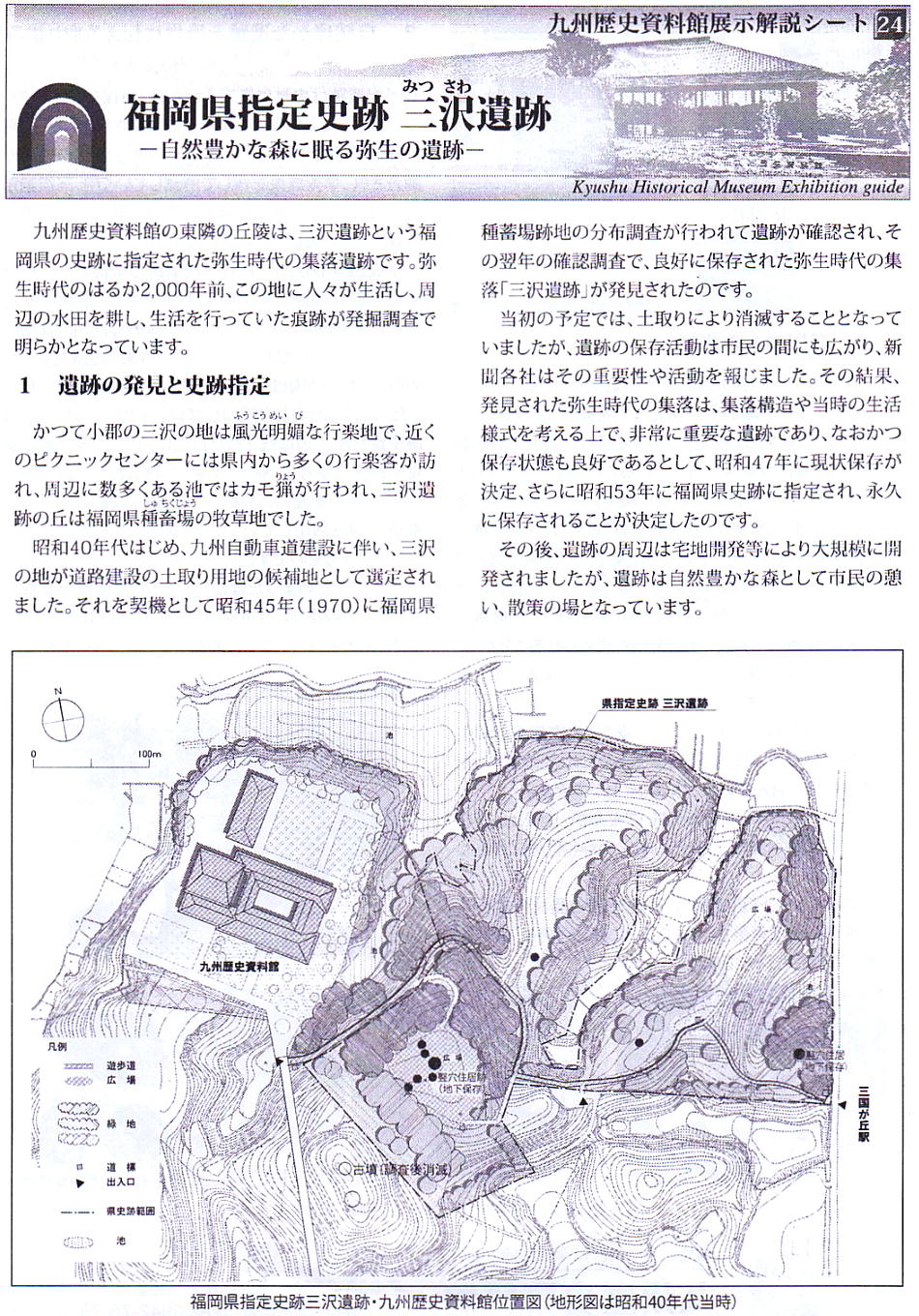 小郡市の三沢地区、西鉄三国が丘駅すぐそば、また平成23年にリニューアルオープンした九州歴史資料館に隣接する「三沢遺跡」は、