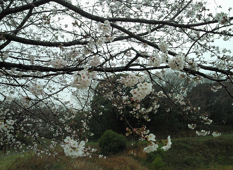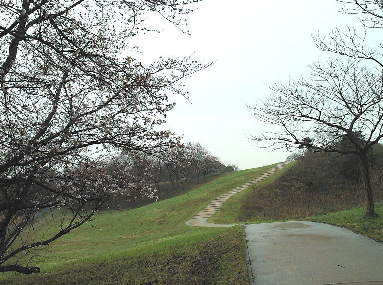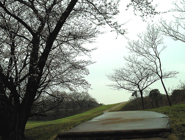 桜の花がほぼ満開。遺跡内は通路やベンチが綺麗に整備されている。予算があれば復元竪穴式住居でも1つ2つ置きたい所だろう。