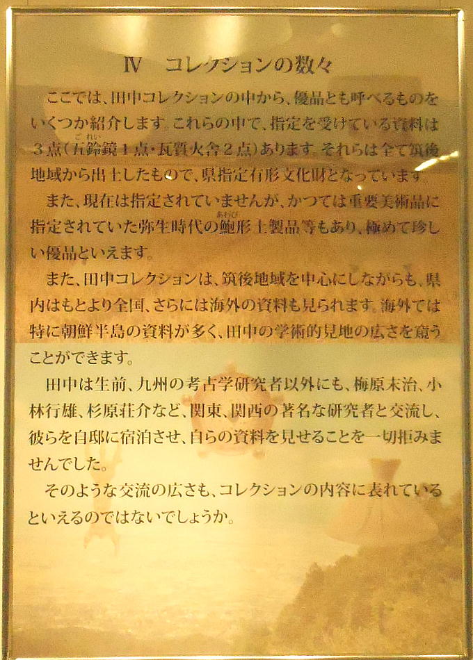 この部分は写真撮影禁止だった。糸島の前原にある博物館など、某氏が館長になるとどこもが撮影禁止になる。某氏は京大出で、