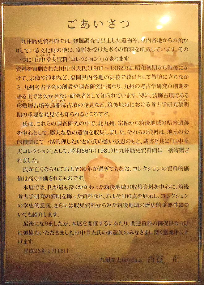 物は膨大な蔵書と共に「田中幸夫コレクション」として、昭和56(1981)年に九州歴史資料館に寄贈された。氏が亡くなっておよ
