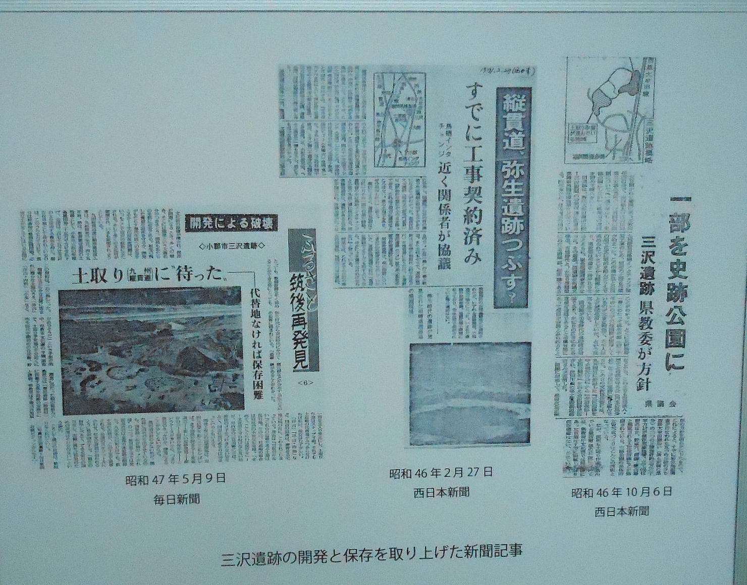 氏の尽力で保存されたものである。田中氏は、遺跡や遺物を現地に保存することの重要性を訴えて、自分の収集した膨大な考古資