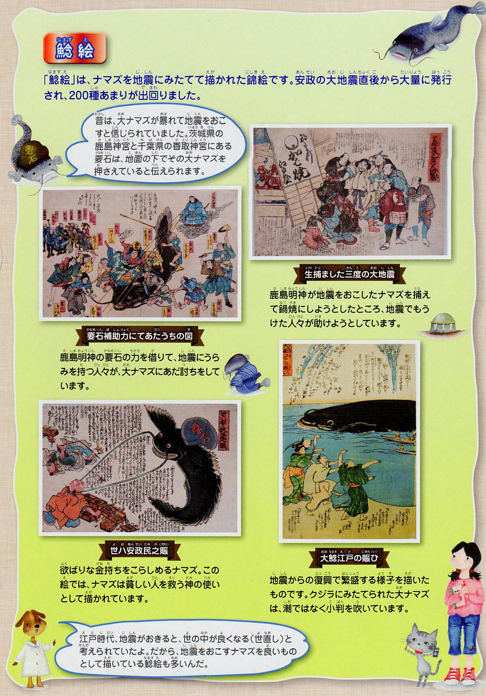 港区と日本の歴史の流れを比較して作られた『年表』、江戸時代と現在の地図を重ね合わせて作成した『江戸復原図』、