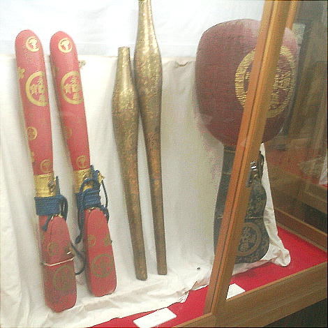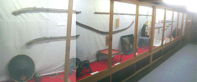 中には江戸時代の武具や大名行列の道具などが展示されている。内部には不意の襲撃に備えるための隠し二階があり、抗争の