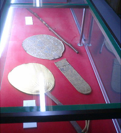 『日本書紀』垂仁天皇紀 羽太玉一個、足高玉一個、鵜鹿鹿赤石玉一個、出石小刀一口、出石桙一枝、日鏡一面、熊神籬、