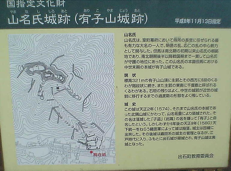 じょう)を築き、本拠を移した。しかし、毛利氏方についたため、1580年(天正8)、羽柴秀吉による第二次但馬征伐で有子