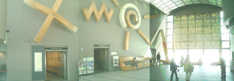 溶けかかった雪に囲まれた近代的なビルディングである。図書室やその他の市民ギャラリ−などと同居している。携帯のカ