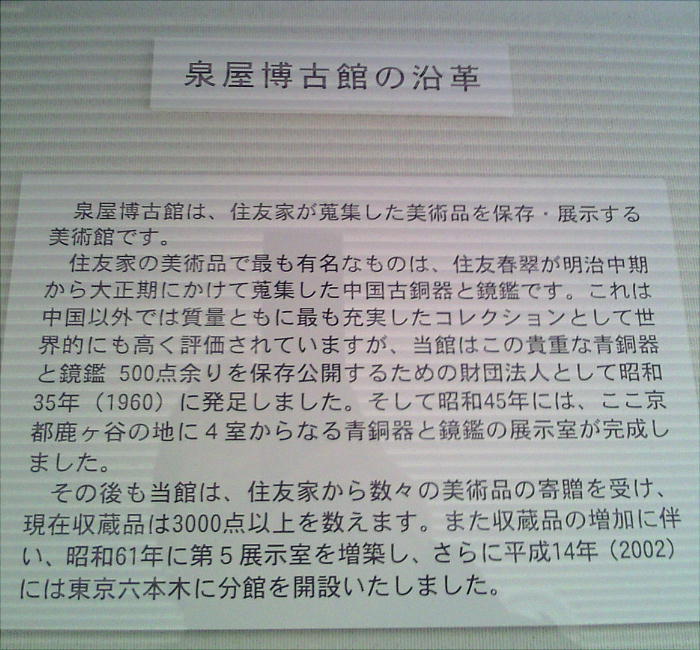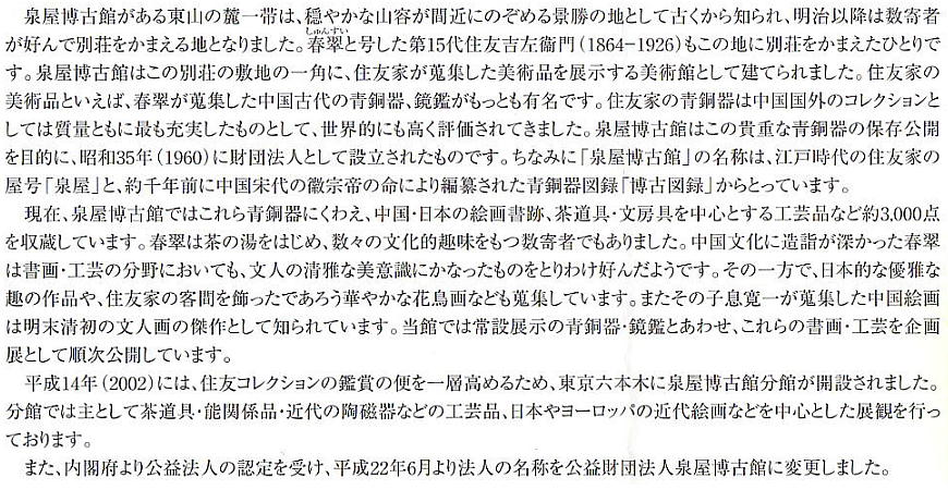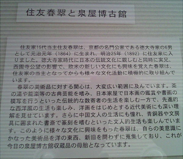 桜真っ盛りの京都へ、歴史倶楽部新参者の大隈君を誘って出かけてきた。私が前からずっと行きたかった「泉屋博古館」で、大隈君