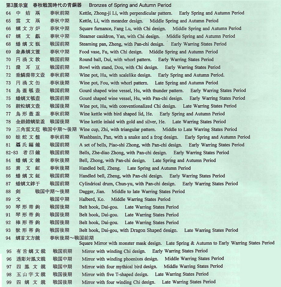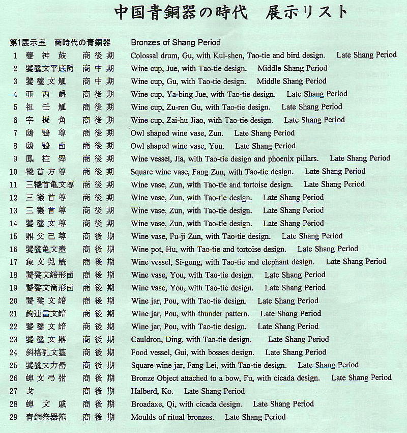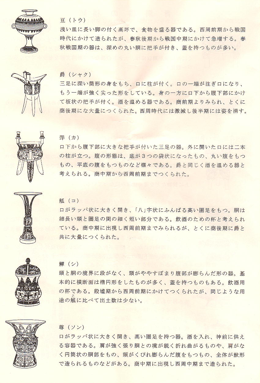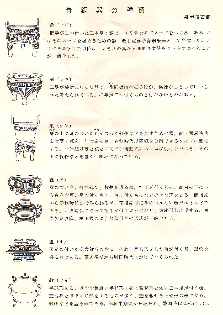 以下はここで貰った青銅器の種別解説表。見学にめちゃ便利だ。
