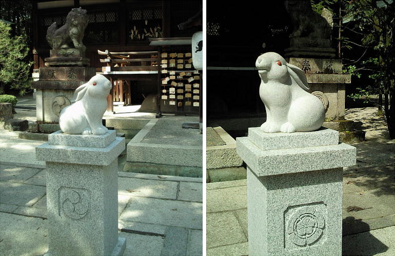 拝殿前の狛犬はなんと兎だった。今年の干支は確かに兎だが、とすると来年は龍がいるんだろうか? それともここは兎と訳ありかな。