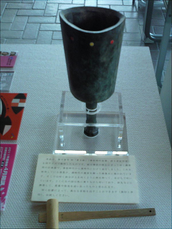 青銅鐘のレプリカが置いてあって、敲いて音色を聞けるようになっている。