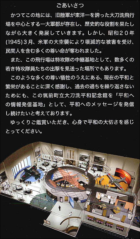 ーマに沿った展示が行なわれている。新しい平和記念館は、筑前町が約10億円かけて建設したものである。