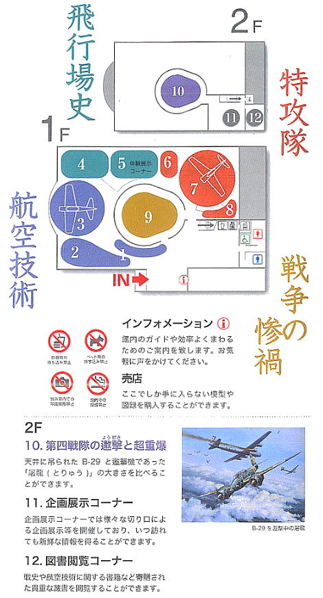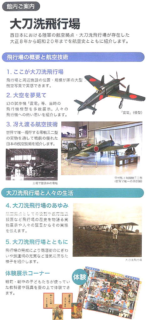 旧日本陸軍九七式戦闘機、旧日本海軍零式艦上戦闘機をはじめ、大戦(太平洋戦争・大東亜戦争)中の資料約1800点が展示さ