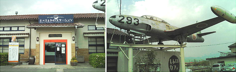 第三セクター「甘木鉄道」甘木線太刀洗駅と、旧大刀洗平和記念館(上)。大刀洗平和記念館は、以前は甘木鉄道の古い太刀洗